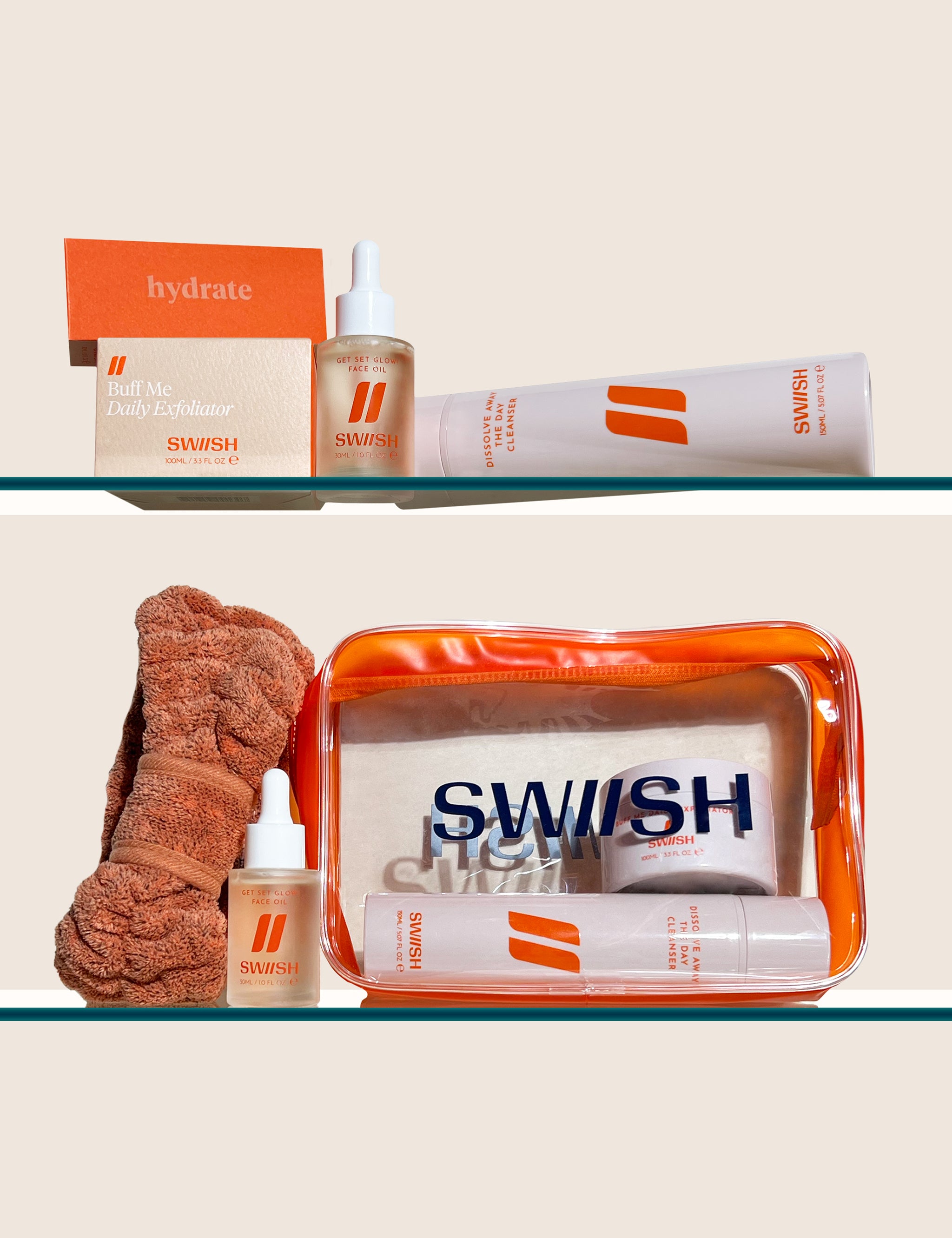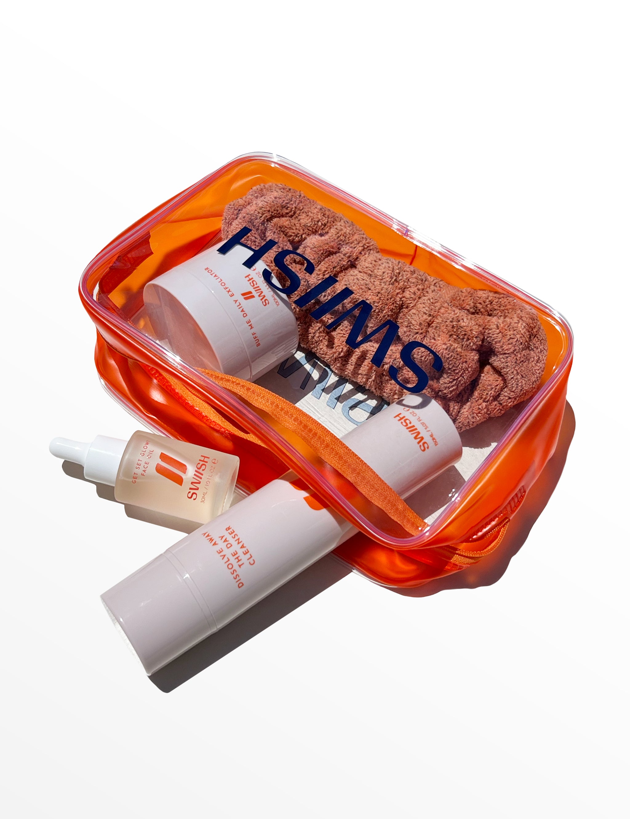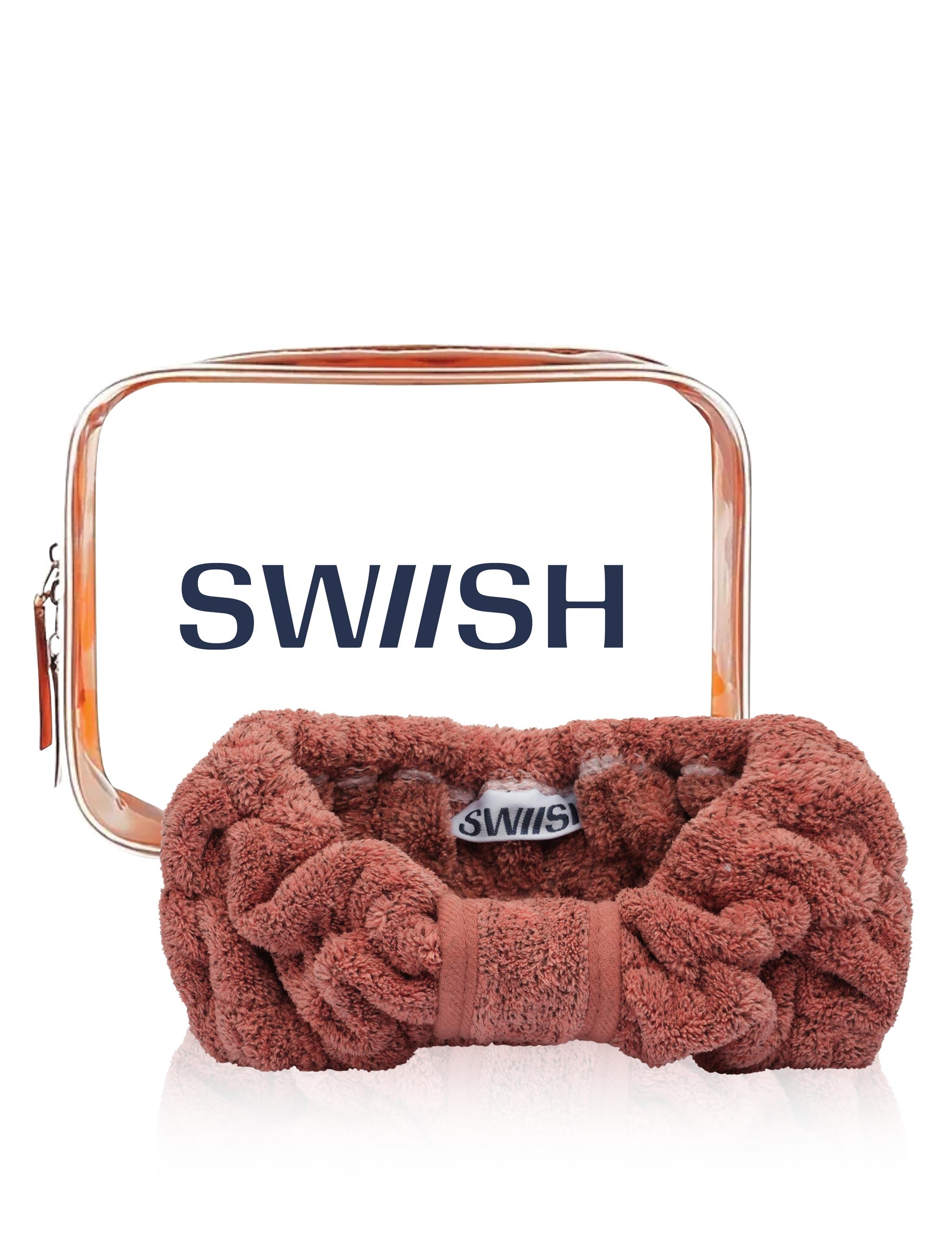 THE ESSENTIALS CLEAR MAKEUP BAG Store all your essentials in this clear, stylish makeup bag. MAKEUP/FACIAL HEADBAND Slide the headband on and it position at your hairline, with the bow detail facing forward.