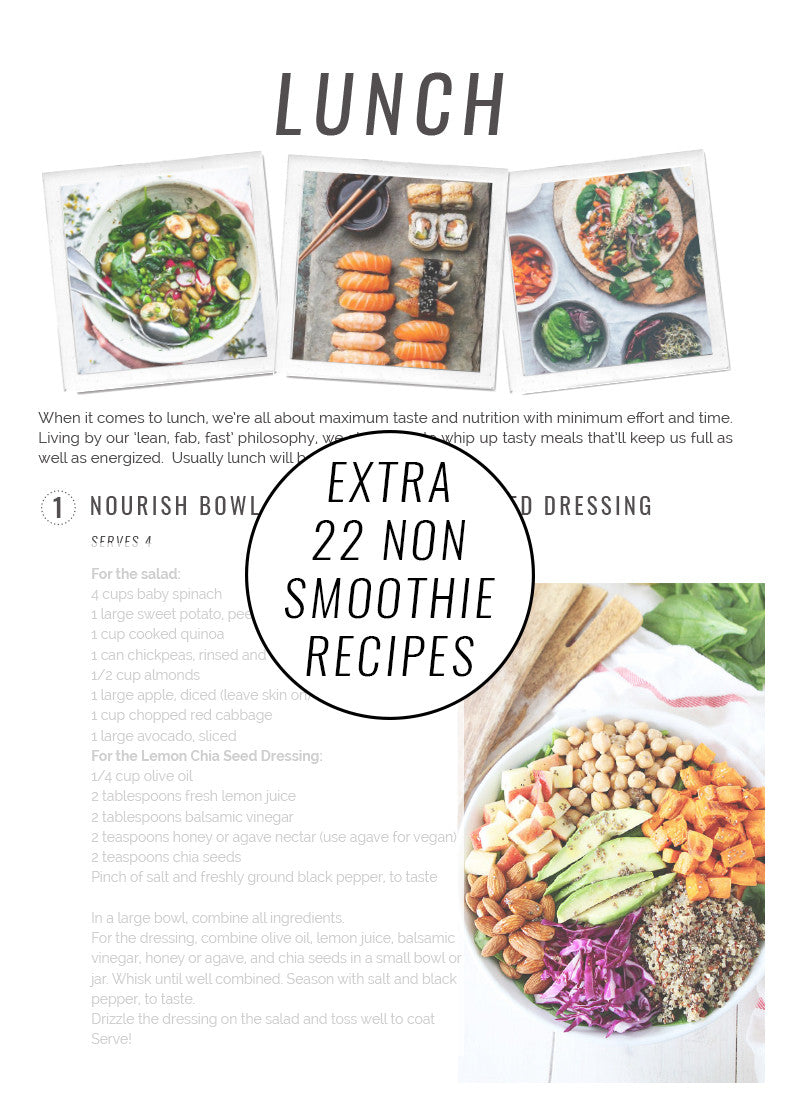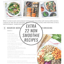 You’ll get shopping lists to make life easier, so that you know exactly what to buy, and how much of it. This reduces waste (both of produce, and of cash!) and time. We also include plenty of extra (non-smoothie) recipes including lunches, dinners and snacks that are quick and easy to make (and taste awesome). You'll receive tips on smoothie preparation to make it quicker and easier than ever, info on sweetening up your smoothie, a look at Sally’s and Maha's days on a plate, ways to alkalise your body for better health, and more. Share your favourite smoothie snaps with us on Instagram and Facebook and let us know how you're enjoying the challenge!
