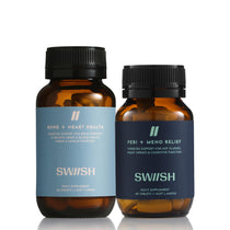 Peri + Meno Relief is formulated to support hot flushes, night sweats and cognitive function. Combine this with Bone + Heart Health which provides targeted support for bone mass, strength and density.