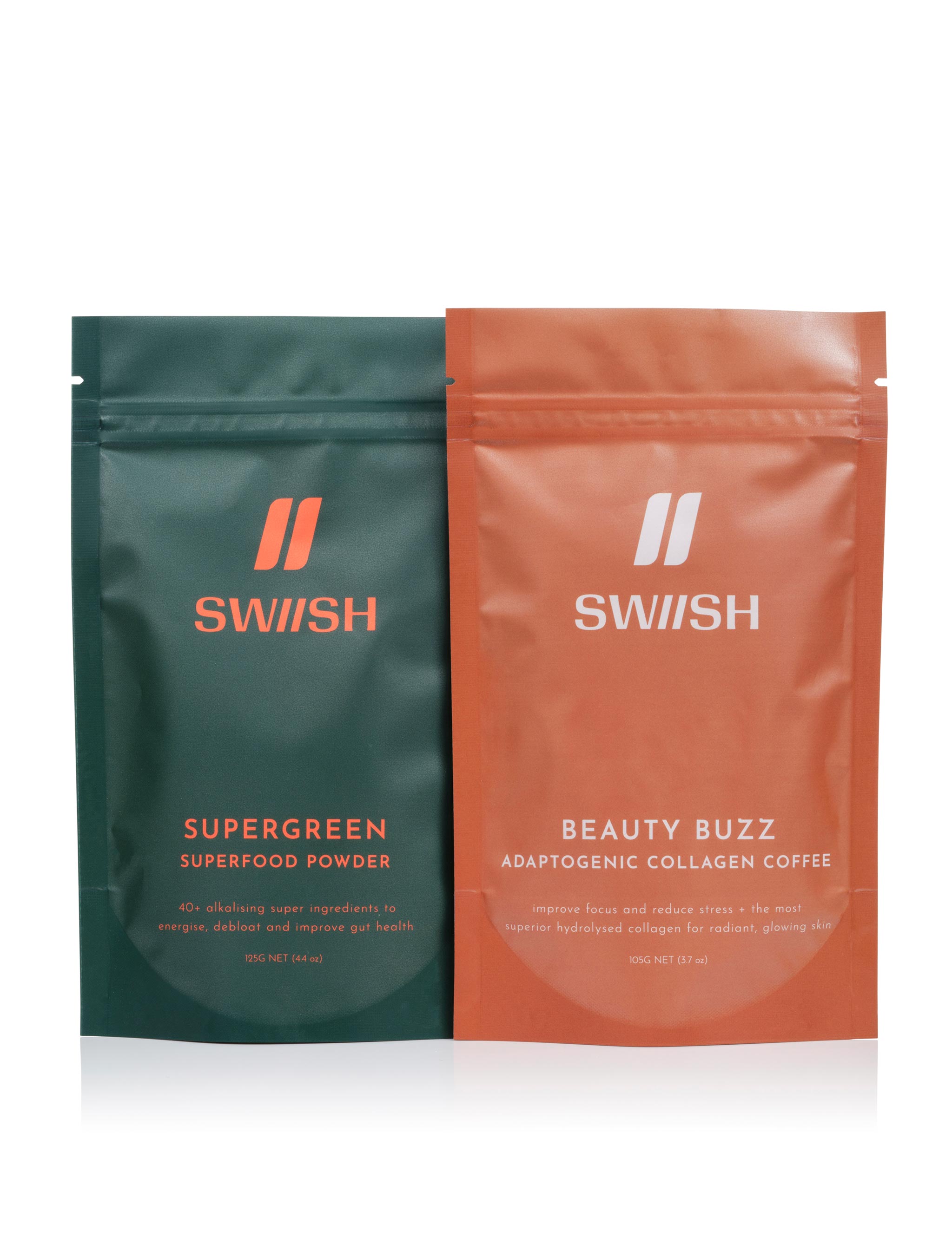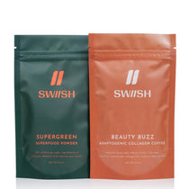 Includes: SUPERGREEN Superfood Power 125g + BEAUTY BUZZ Aadaptogenic Collagen Coffee 105g
