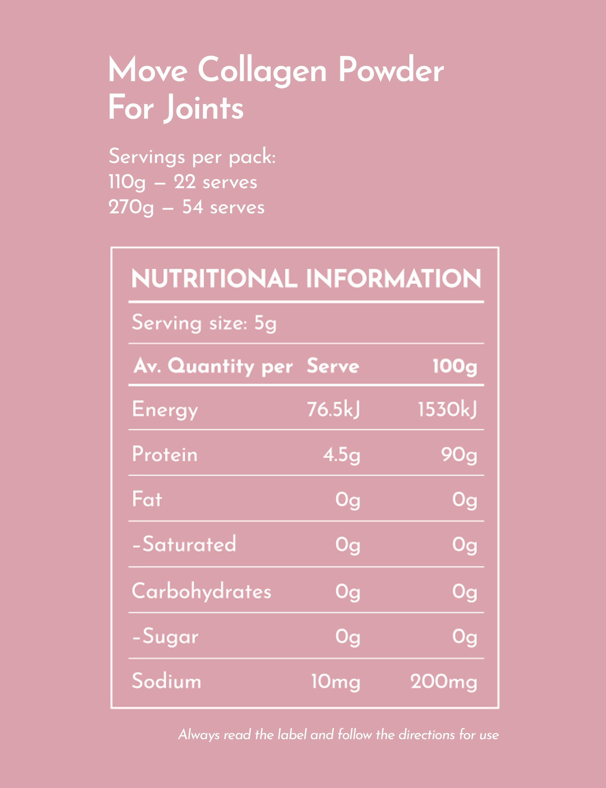 MOVE COLLAGEN FOR JOINTS: 100% Joint-Specific Bovine Collagen Peptides (5000mg per serve).